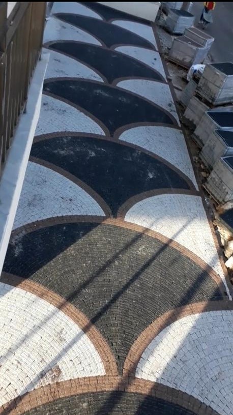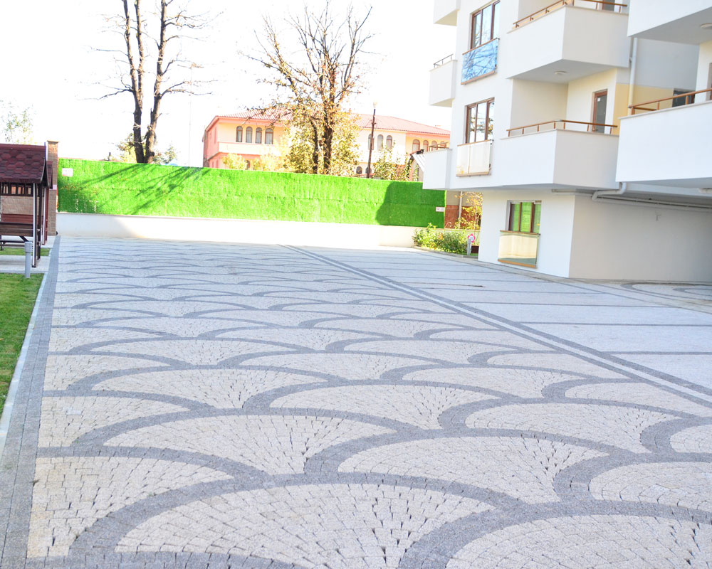 Yedi farklı boyuttaki taştan oluşan model, doğal küp taş döşemesine alternatif olan bir beton parke modelidir.