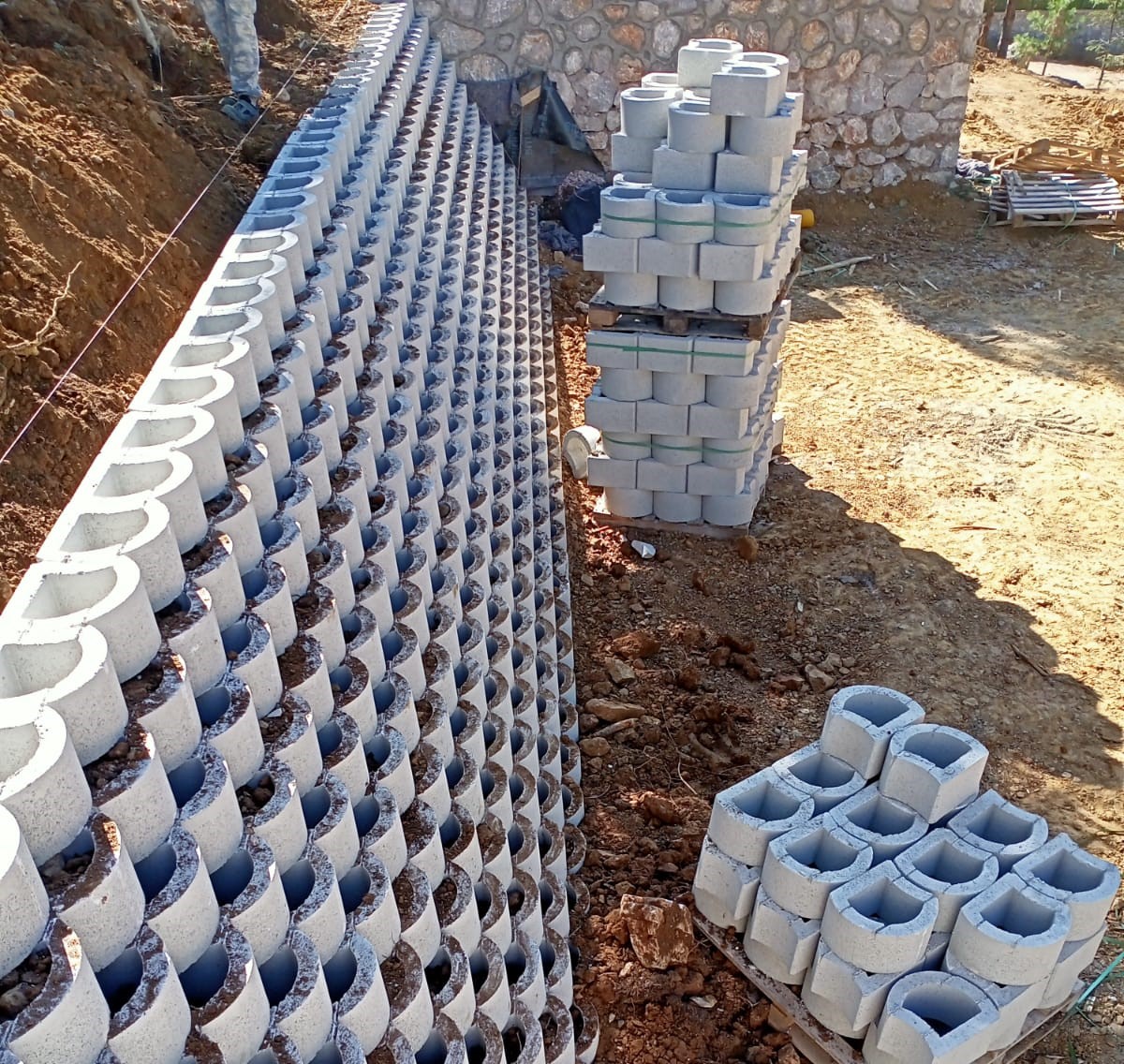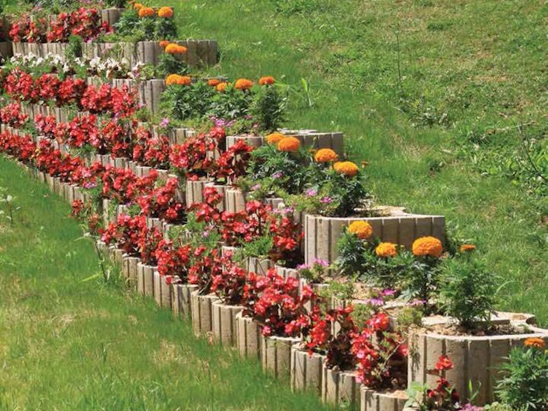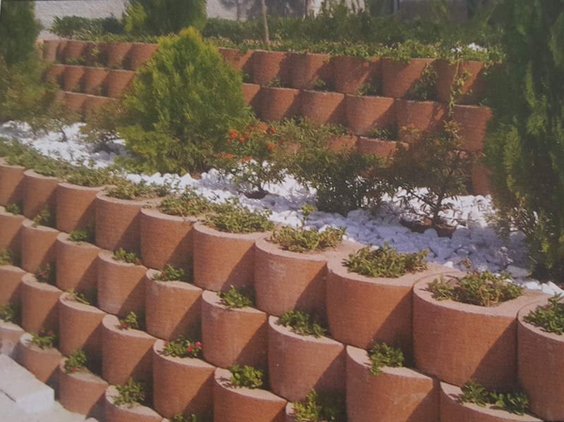 Şev taşının farklı bir modeli olup saksı gibi toprak doldurulabileceği için duvar yapımı sonrası bitkilendirme yapılabilmektedir.